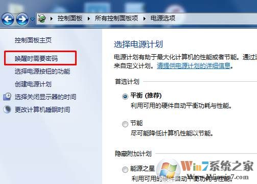 3、在左側(cè)找到喚醒時(shí)需要密碼,點(diǎn)擊進(jìn)入下一個(gè)選項(xiàng)