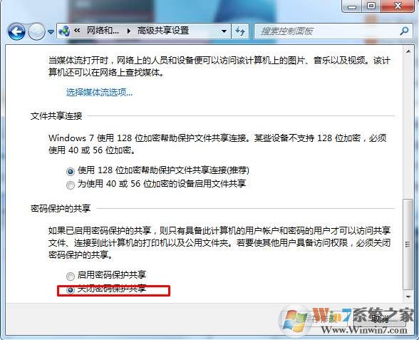2、在密碼保護(hù)的共享區(qū)域設(shè)置 關(guān)閉密碼保護(hù)共享,保存。