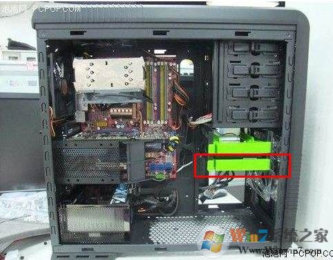 1、打開電腦機箱側蓋就可以看到主板了,檢查下主板上有沒有空余的內存插槽;