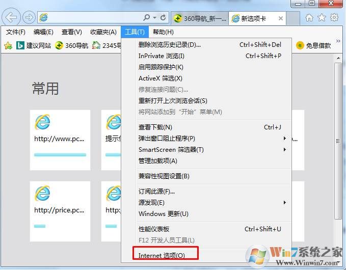 打開IE瀏覽器 → 點擊【工具】→【Internet 選項】