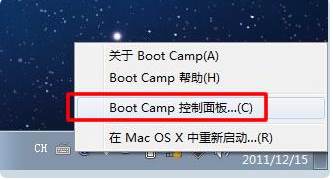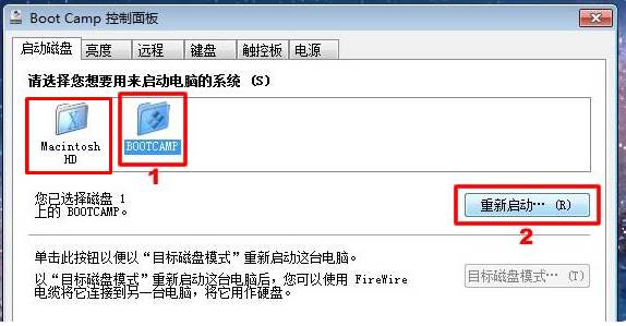 windows7系統(tǒng)下打開BootCamp(右下角灰色的小圖標(biāo),可能隱藏在小三角里了),在啟動磁盤選項(xiàng)里選擇啟動電腦的系統(tǒng)為Mac OS X,然后點(diǎn)重新啟動鍵。