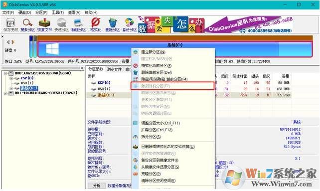 3、選擇固態(tài)硬盤(pán),看你要安裝什么系統(tǒng),如果是win7那么給固態(tài)分區(qū)分MBR類型的分區(qū),(win8以上系統(tǒng)可以用GPT),分好區(qū)后右鍵固態(tài)的分區(qū)如果已經(jīng)是活動(dòng)分區(qū)了,那么就不用管它,如果不是活動(dòng)分區(qū)右鍵激活這個(gè)分區(qū)即可。然后記住固態(tài)的分區(qū)盤(pán)符,后面會(huì)用到。