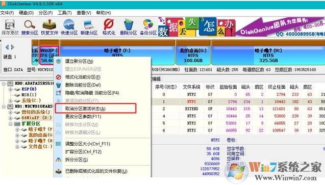 4、機(jī)械盤(pán)也需要分區(qū)的話就給機(jī)械盤(pán)也分就行了,然后查看機(jī)械盤(pán)里面是否有活動(dòng)分區(qū),有的話右鍵取消激活分區(qū)就可以。