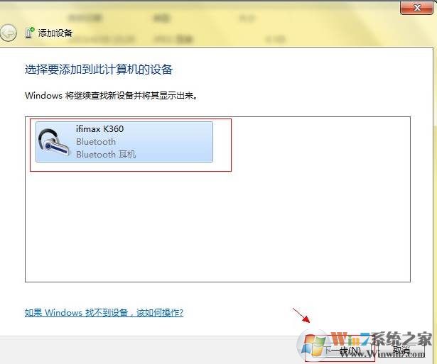 4、此時就可以檢測到你的藍(lán)牙音箱了,選擇后點(diǎn)擊下一步;