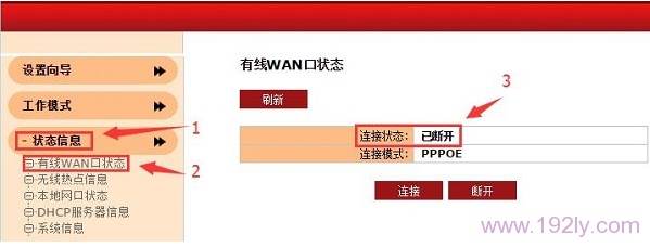 路由器WAN口狀態(tài)顯示:已斷開,說明路由器聯(lián)網(wǎng)不成功