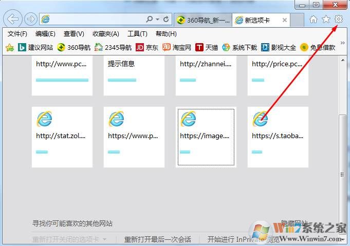 1、打開IE瀏覽器,然后點(diǎn)擊右上角的“齒輪”圖標(biāo);