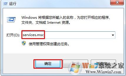 5、完成打印機(jī)添加后,把打印機(jī)設(shè)置為共享。接著再打開print spooler服務(wù),使用組合鍵(win鍵+r)打開運(yùn)行窗口,輸入services.msc,點(diǎn)擊“確定”按鈕繼續(xù),