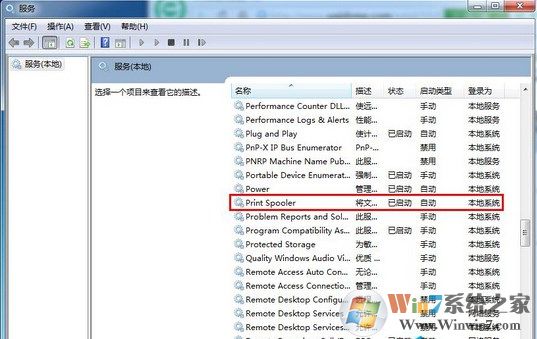 6、在打開的服務(wù)窗口中,找到并雙擊打開print spooler屬性,