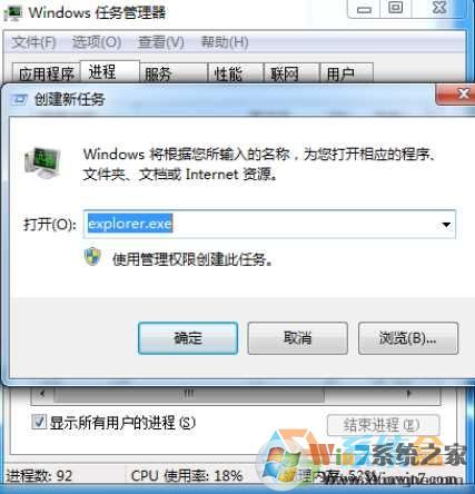 7、點擊任務管理器的文件 - 新建任務,輸入 explorer.exe