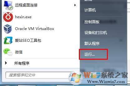 1、點(diǎn)擊開始菜單,然后點(diǎn)擊“運(yùn)行”選項(xiàng);