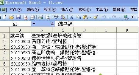 3、保存完畢后,再用EXCEL打開這個文件就不會出現(xiàn)亂碼的情況。