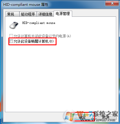 3、切換到電源管理,將允許此設(shè)備喚醒計算機取消打勾,確定即可