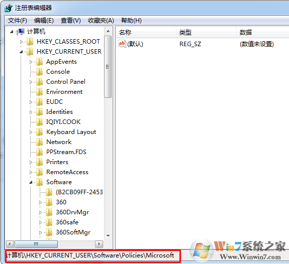 3、在注冊(cè)表編輯器窗口的左側(cè)菜單中依次點(diǎn)擊展開“ HKEY_CURRENT_USER//Software//Policies//Microsoft//Mmc{8FC0B734-A0E1-11D1-A7D3-0000F87571E3}Restrict_Run”跟“HKEY_CURRENT_USER//Software//Policies//Microsoft//MMC{0F6B957E-509E-11D1-A7CC-0000F87571E3}Restrict_Run”