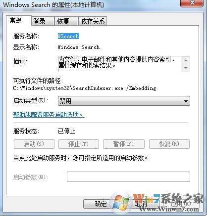 3、雙擊打開windows search服務(wù),然后把啟動類型設(shè)置為禁用