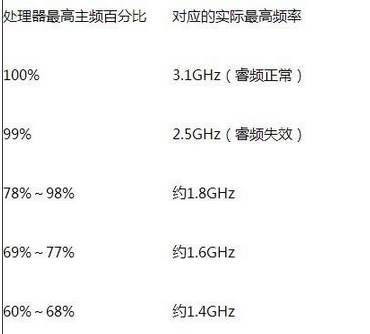 設(shè)置完成后,睿頻就被關(guān)閉了。以下為百分比數(shù)據(jù)(某款CPU為例)