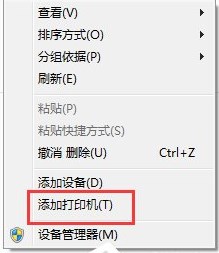 4、在空白處,右鍵點擊,在菜單欄里選擇“添加打印機”,打開添加打印機向?qū)Т翱凇?br />