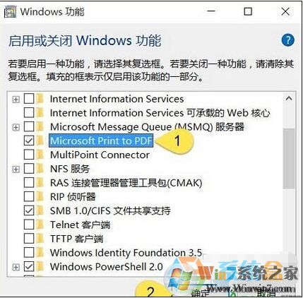 2、找到并重新勾選 Microsoft Print to PDF — 再點擊確定重新安裝即可