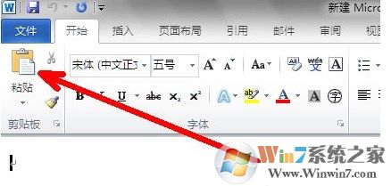 4、回到剛才打開的那個word空白文檔中,單擊箭頭所指的部位,即粘貼選項。