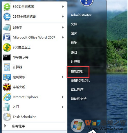首先、點(diǎn)擊“WIN”彈出界面的“控制面板”