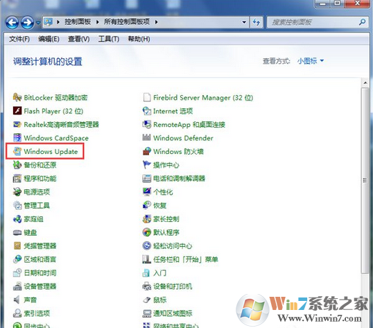 其次、在控制面板中找到“Windows Update”。并雙擊進(jìn)入。