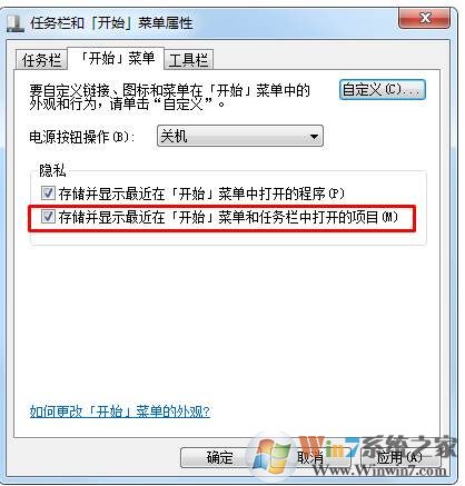 1、回到開始菜單設(shè)置頁面,然后把 :儲存并顯示在最近在【開始】菜單和任務(wù)欄中打開的項目選項打勾;