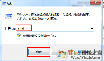1、我們可以進(jìn)行完全注冊(cè)系統(tǒng)dll文件的操作,在運(yùn)行中輸入CMD,點(diǎn)擊確定或按回車(chē)鍵,打開(kāi)管理員命令提示符窗口;