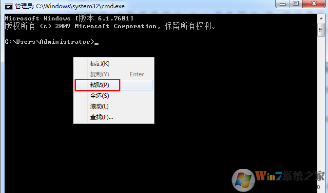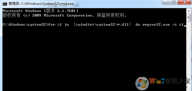 2、復(fù)制右鍵粘貼命令:for %1 in (%windir%\system32\*.dll) do regsvr32.exe /s %1到命令提示符中;