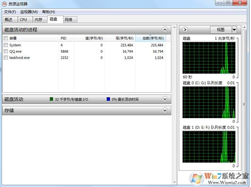 以上就是Win7系統(tǒng)磁盤占用率查看方法,同時(shí)也可以在資源監(jiān)視器中查看磁盤使用情況。