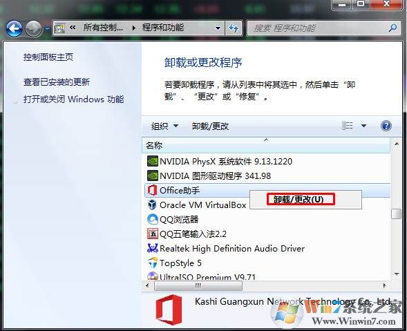 同時(shí)用戶也可以在控制面板的 程序和卸載中找到office助手進(jìn)行卸載。
