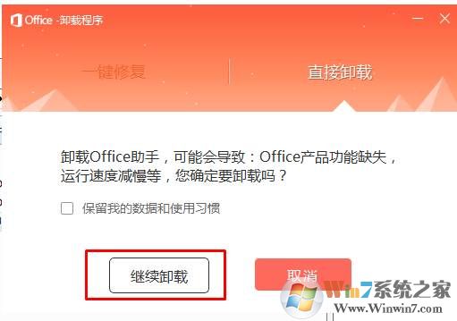 3、接下來,點(diǎn)擊直接卸載,然后再點(diǎn)繼續(xù)卸載(建議取消勾選 保留我的數(shù)據(jù)和使用習(xí)慣,卸載更干凈);