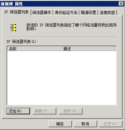 5、接下來(lái)再點(diǎn)擊“添加”,隨后彈出“新規(guī)則屬性”對(duì)話框,點(diǎn)擊“添加”,又彈出了“IP篩選列表”;