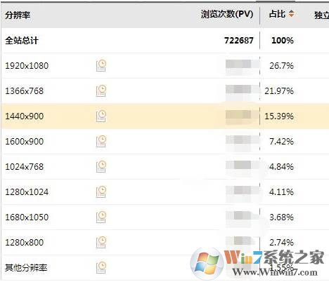 主流屏幕分辨率: