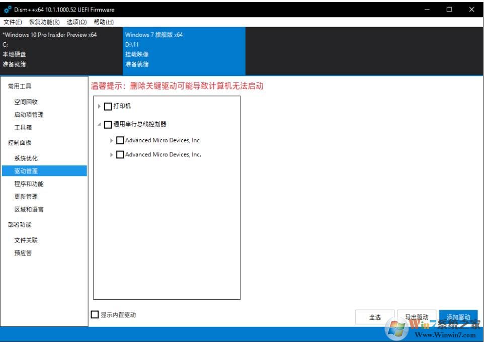 Windows 7自身沒(méi)有附帶什么驅(qū)動(dòng),所以我們還需要自己添加一些常用的驅(qū)動(dòng)。集成驅(qū)動(dòng)的時(shí)候請(qǐng)格外小心,稍有不慎做出來(lái)的鏡像就沒(méi)辦法啟動(dòng)。一開始我嘗試下載萬(wàn)能驅(qū)動(dòng), 然后將所有驅(qū)動(dòng)全添加到鏡像中。不過(guò)這種方式好像不對(duì), 因?yàn)轵?qū)動(dòng)只對(duì)當(dāng)前安裝的硬件有效,如果安裝了不合適的驅(qū)動(dòng), 系統(tǒng)就無(wú)法啟動(dòng)了。