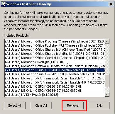 OK,這樣VC++2005就卸載完成了,此時你重裝VC++2005才能正常安裝,如果是別的版本,那么卸載其它的就可以。