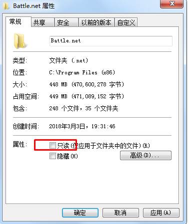 3、你的某些文件屬性不改是只讀而設(shè)置成了只讀,把所有文件屬性的只讀去掉就行了(可以先整個(gè)文件夾所有文件設(shè)成只讀,再全部去掉只讀屬性比較快),比如一款游戲不能玩,那么右鍵點(diǎn)擊該游戲的安裝文件夾,取消只讀屬性,如下圖