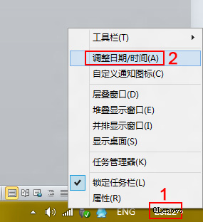 (1)將鼠標移動到桌面右下角的時間區(qū)域并點擊右鍵,再彈出菜單中選擇調整日期/時間(A)。如下圖所示: