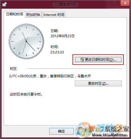 (2)再彈出的日期和時間窗口,點擊更改日期和時間(D)。如下圖所示: