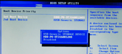 (4)、這時返回上一層,進(jìn)入boot device Priority,會列出1st boot device,這就是第一啟動設(shè)備,選擇硬盤即可。