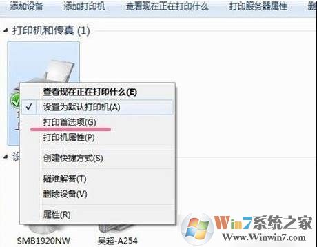 1、首先,打開”設(shè)備和打印機(jī)“,右鍵點(diǎn)擊HP打印機(jī),選擇“打印首選項(xiàng)”。