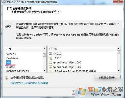 在這里選擇HP,然后在右側(cè)找到你要安裝的型號;