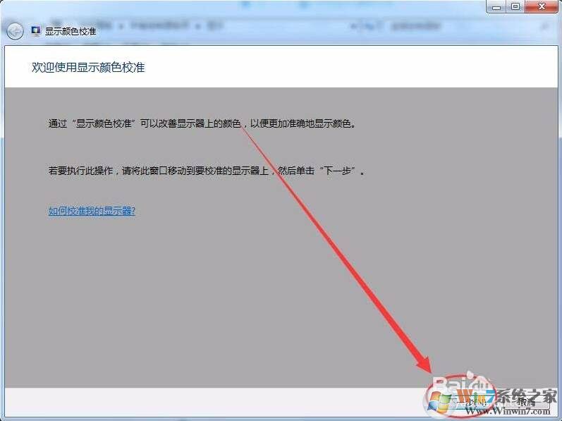 4、出現(xiàn)顯示顏色校準(zhǔn)歡迎界面后,單擊下一步按鈕。
