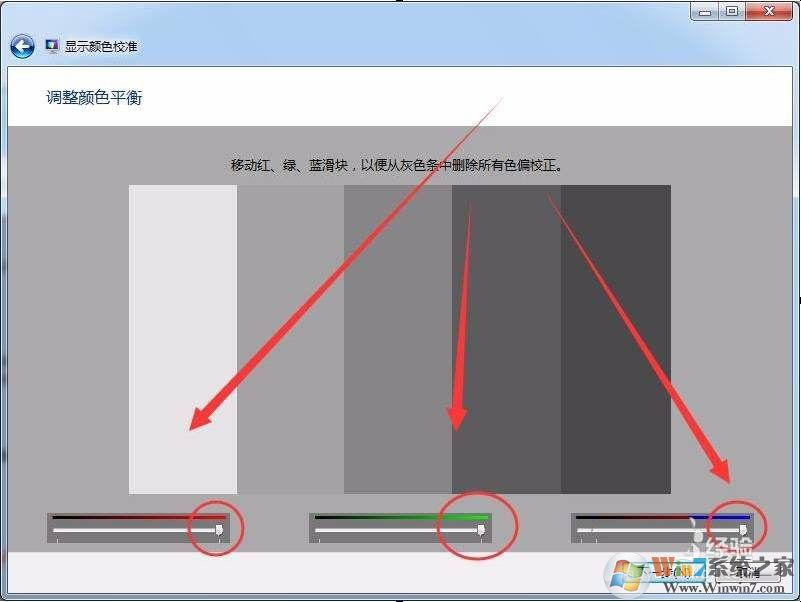 12、根據(jù)提示的中等灰度圖片,在調(diào)整顏色平衡窗口中,拖動(dòng)滑塊設(shè)置好顏色平衡。