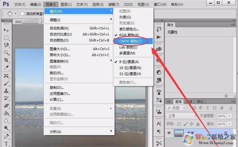 3、最后,選擇CMYK顏色選項(xiàng),更改顏色模式。