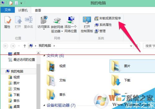 1、打開“我的電腦”點(diǎn)擊箭頭所指的"卸載或更改程序"