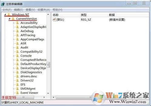 3、我們?cè)僬归_Microsoft\WindowsNT\CurrentVersion;