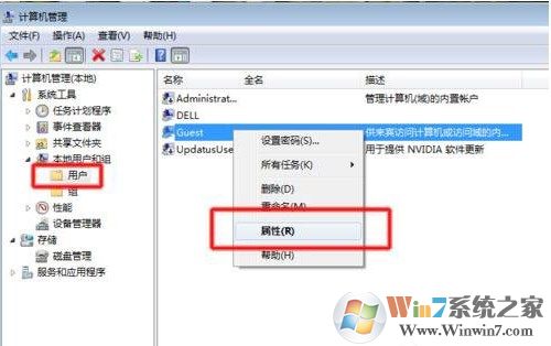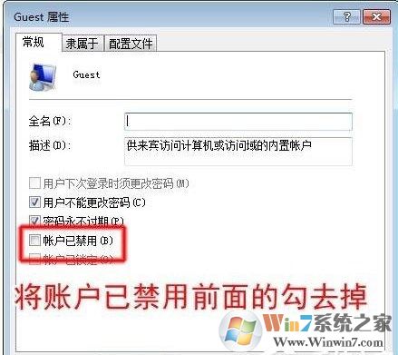 4、我們右鍵“Guest”屬性→在彈出的對(duì)話框中將“賬戶已禁用”前面的勾去掉。