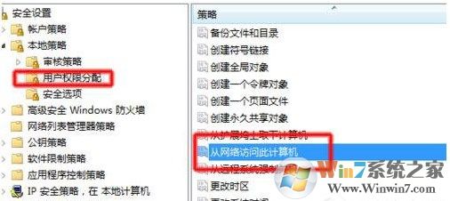 7、我們選擇“本地策略”→“用戶權(quán)限分配”→“從網(wǎng)絡(luò)訪問(wèn)此計(jì)算機(jī)”。
