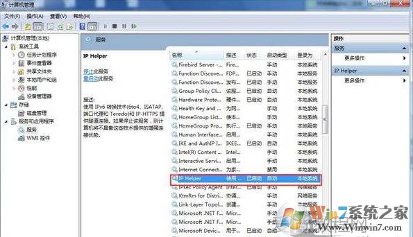 4、在服務(wù)列表中找到IP helper服務(wù)這一項(xiàng);