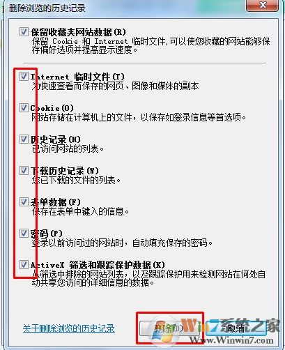 3、可以勾選所有選項,也可以保留一些自己需要用的(最好全刪),點擊【刪除】即可: