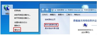 1、點擊【網絡】右鍵選擇【屬性】,點擊【更改適配器設置】: